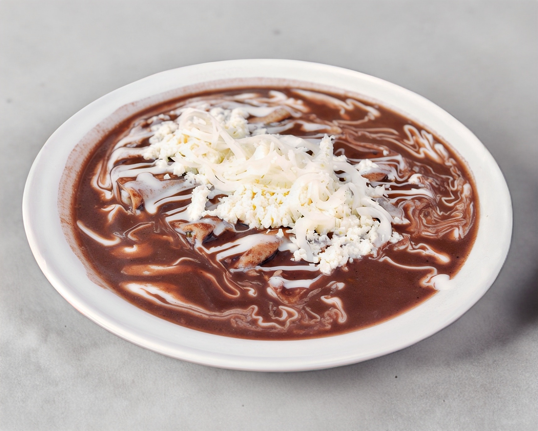 4 Tortillas Bañadas en Salsa de Frijol. Acompañadas con Queso, Crema, Cebolla y Perejil. 🧀🧅🌿 Carne a Elegir (Opcional)