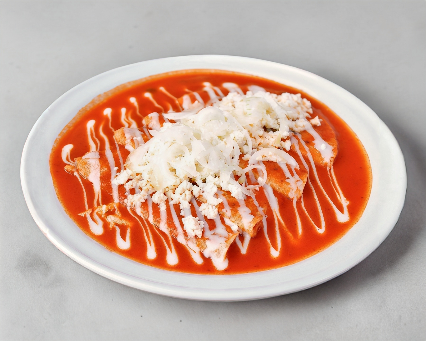 4 Tortillas Bañadas en Salsa de Tomate. Acompañadas con Queso, Crema, Cebolla y Perejil. 🧀🧅🌿 Carne a Elegir (Opcional)