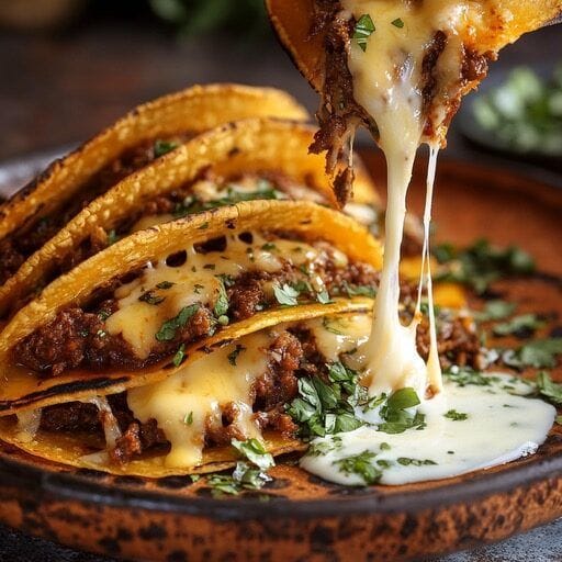 Hechas de birrias de res, queso mozzarella gratinado, tortilla de maíz, acompañadas de salsas, limones, cilantro y cebolla, 1 pza.