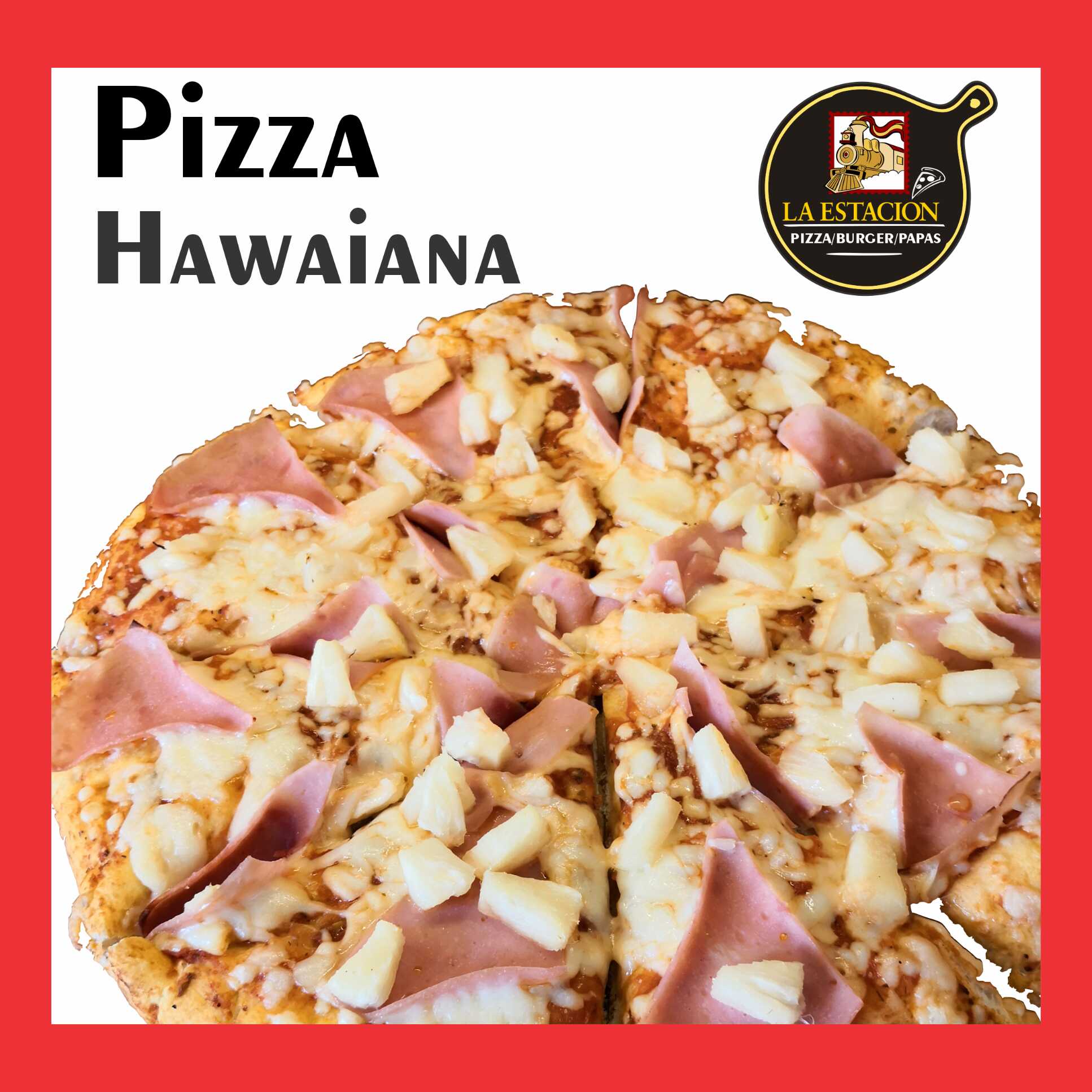 Pizza elaborada con masa madre napolitana, Salsa pomodoro, seleccion de quesos(gouda, manchego, mozzarella), Pepperoni madurado, jamón artesano, y rica piña.