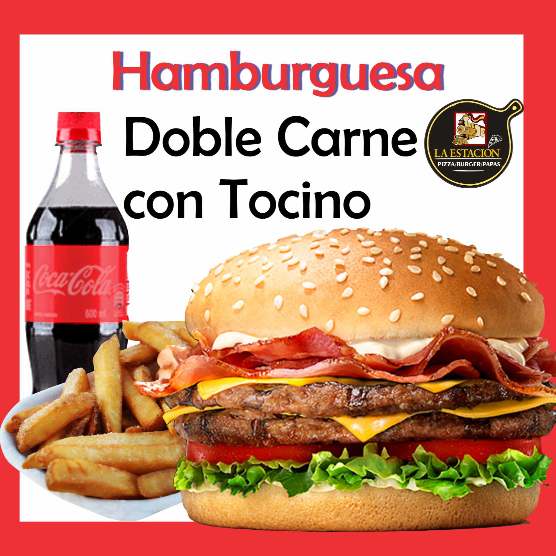 Hamburguesa Doble Carne, Tocino, Papas y Refresco