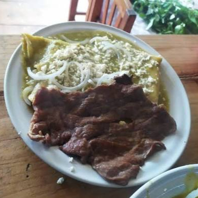 Enchiladas verdes o rojas con tasajo, cecina, huevo y chorizo.