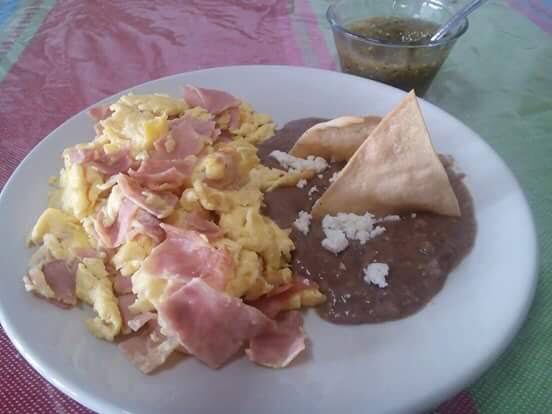 Acompañada de frijol, Frijol, Tortillas o Bolillo y Chiles en vinagre o Salsa