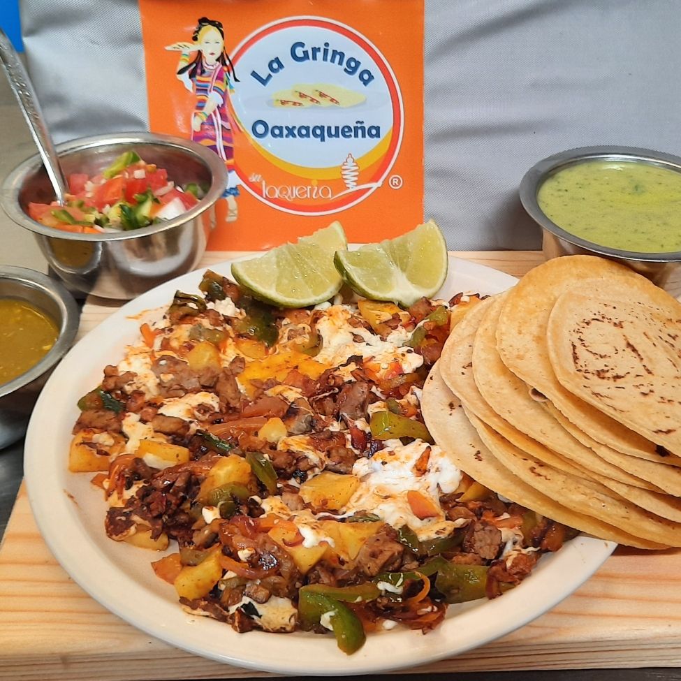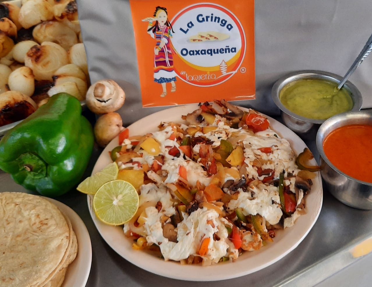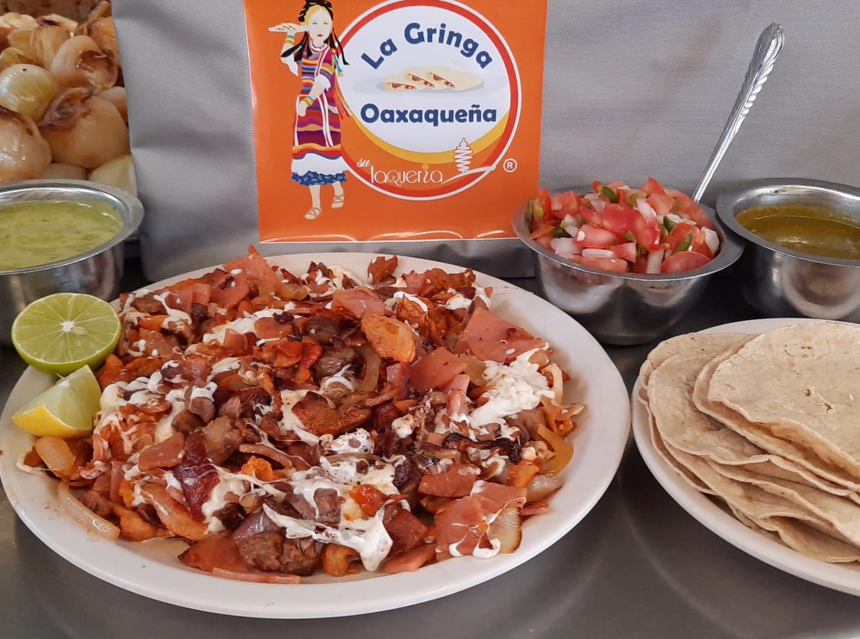 Preparada con bistec, al pastor, jamón, chuleta, piña, quesillo con tortillas de maíz.