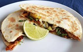 2 Tortillas de harina con queso amarillo, jamón, quesillo y carne al pastor.