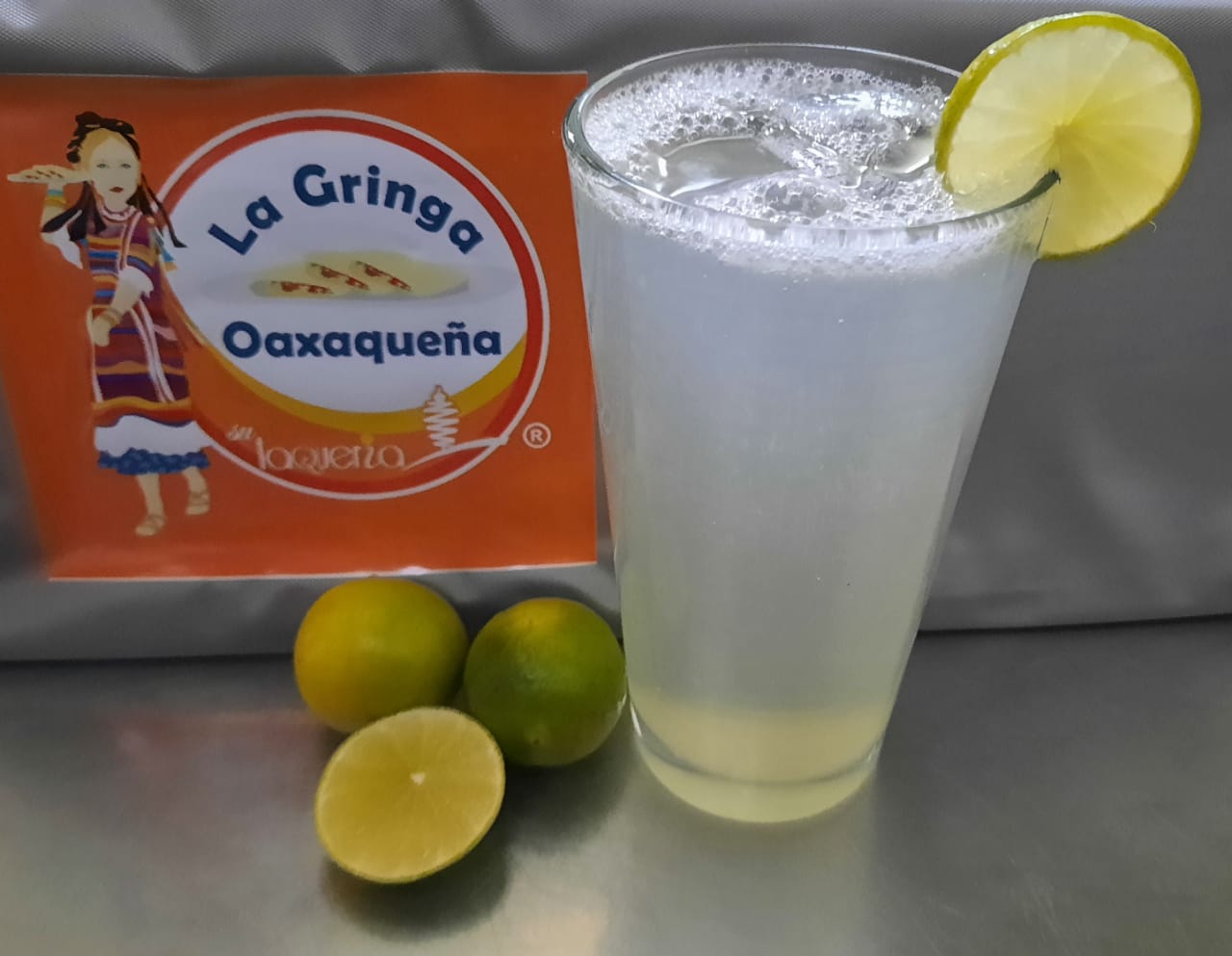 Preparada con agua mineral limón y azúcar servida en un vaso de 500ml.