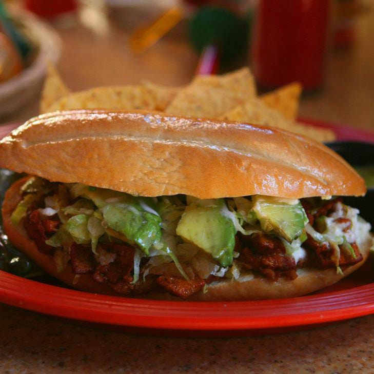 Carne de res, jamón, quesillo, lechuga, queso amarillo, tomate, cebolla caramelizada,aderezos y chiles en vinagre.