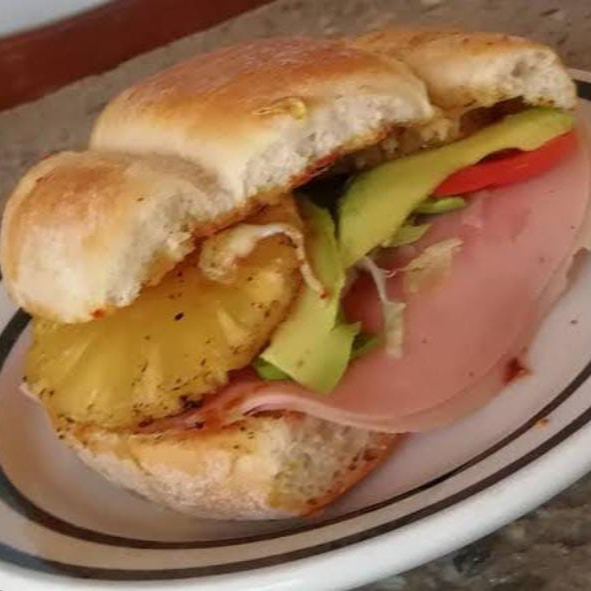 Doble rebanada de jamon , quesillo, piña, lechuga, tomate, salsa, guacamole.