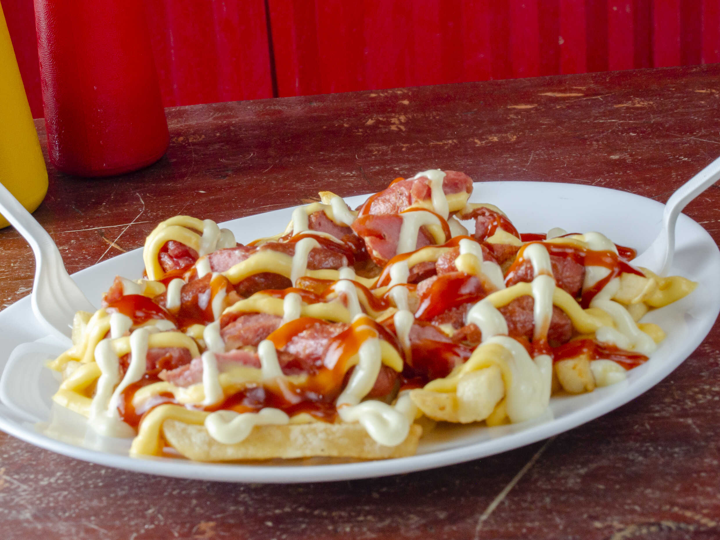 Salchipapas.
