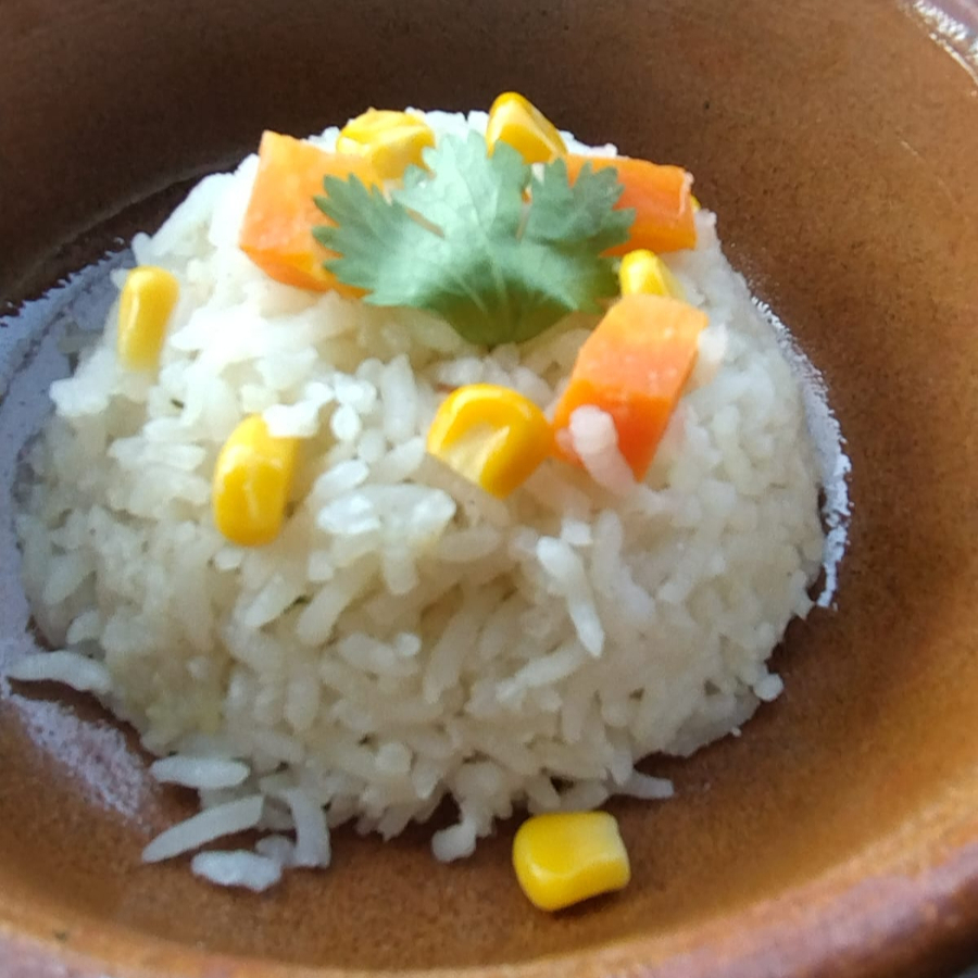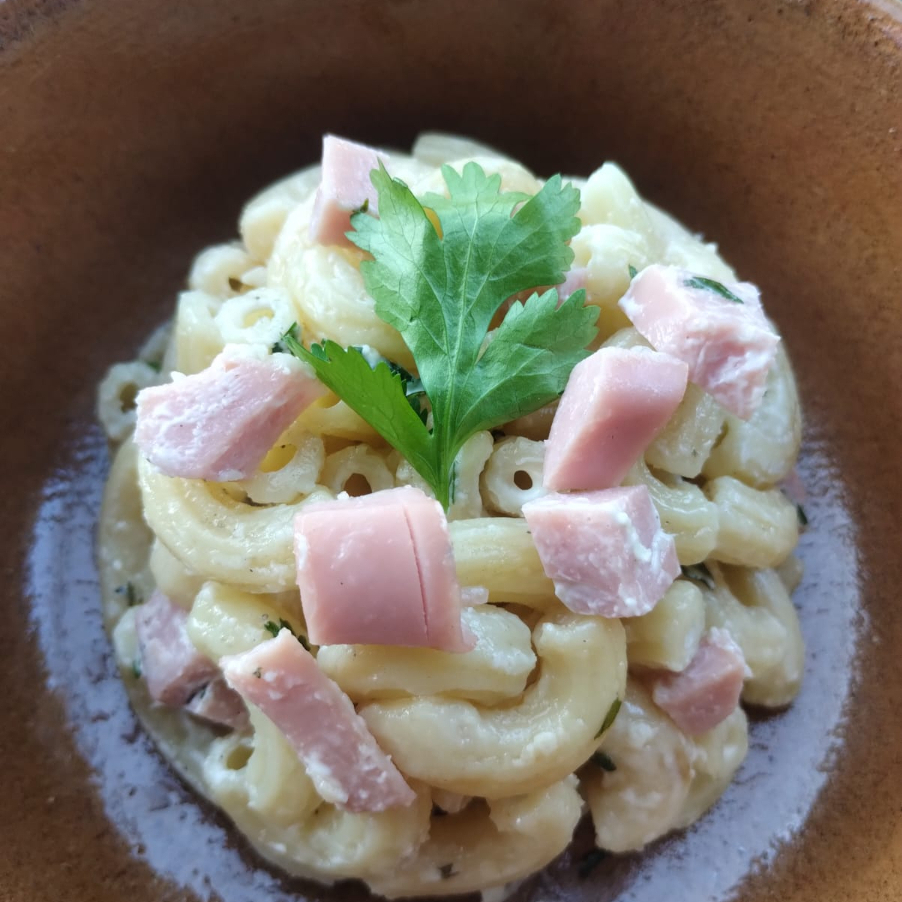 Sopa de coditos con zanahoria, mayonesa y cilantro.