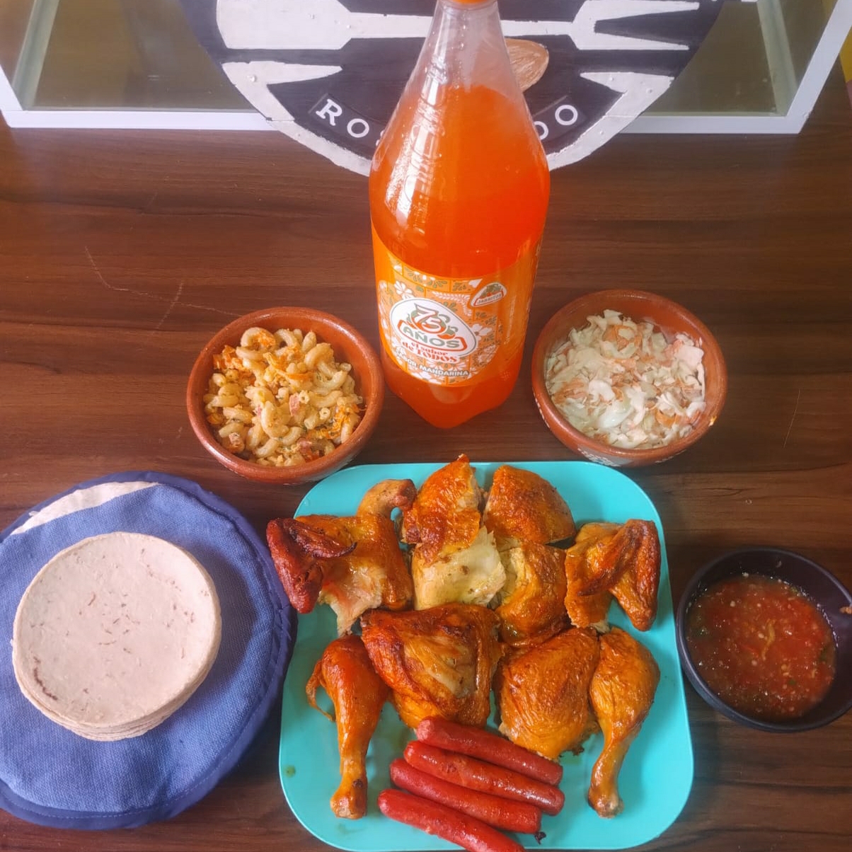 2 Pzas de Pollo Rostizado Acompañado de una Guarnición, salsa y Tortillas