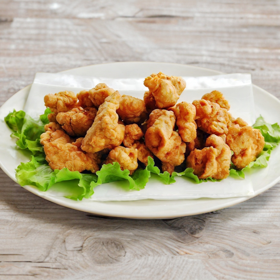Porciones pequeñas de pollo frito condimentado