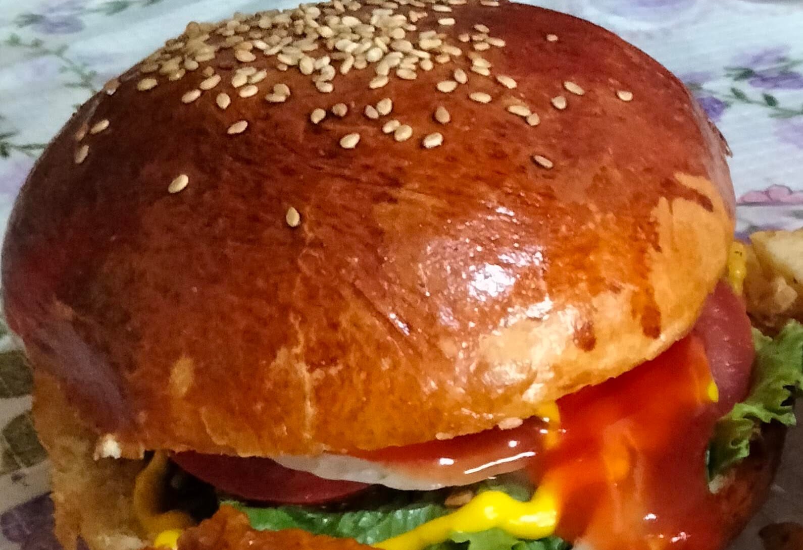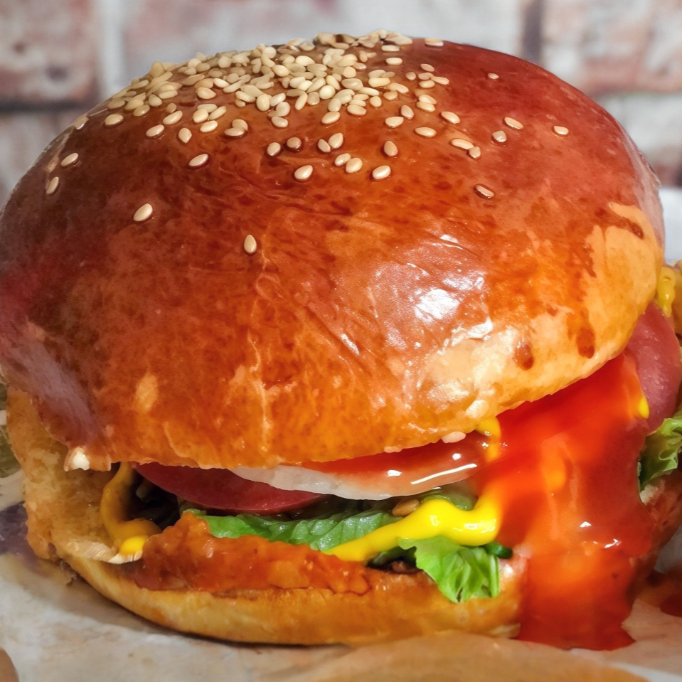 Hamburguesa de Pollo Bañada en Salsa de Tamarindo