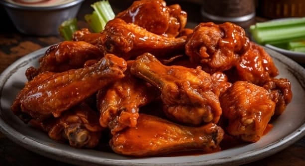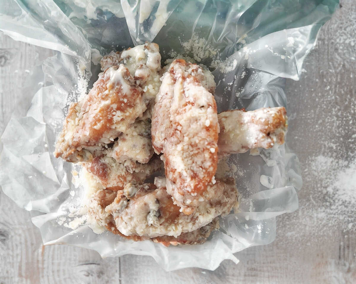 Alitas fritas bañadas en salsa de queso parmesano