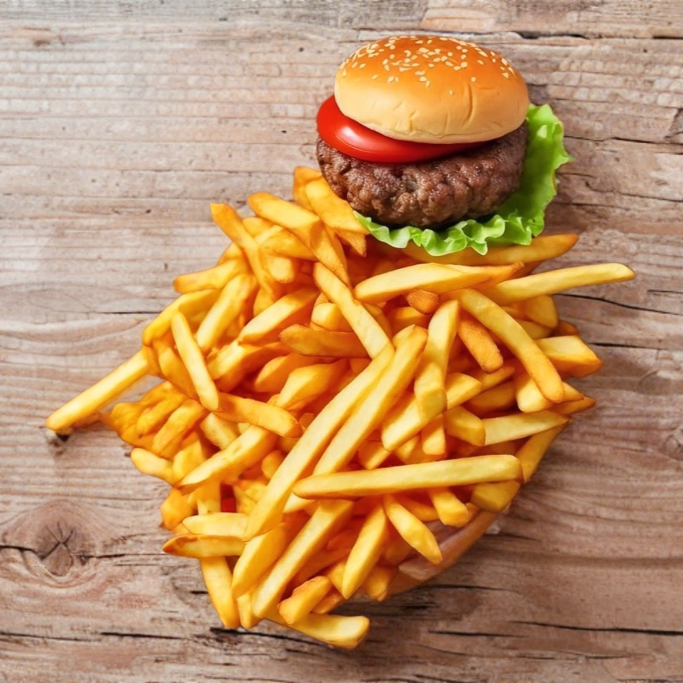 Papas a la francesa*1 + Hamburguesa Carne a Elegir..*1 + 4 alitas.. 1*1