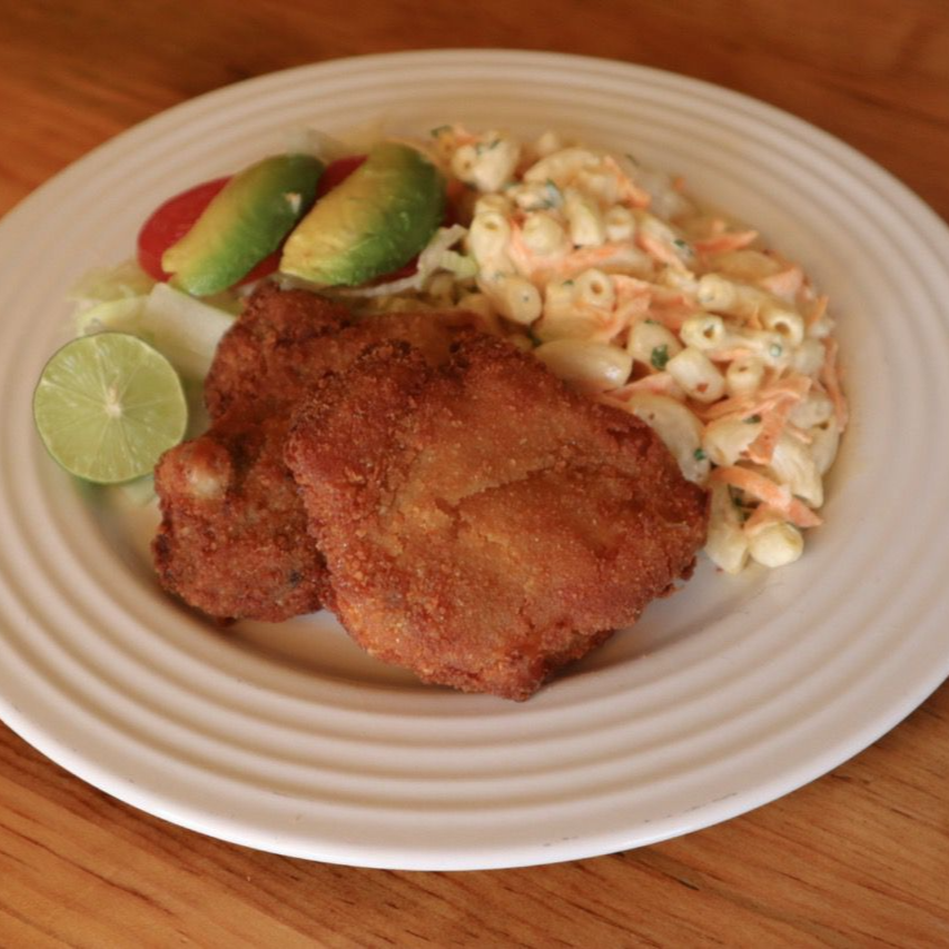 ¡Agua gratis! Acompañado de 2 guarniciones, sopa y tortillas.