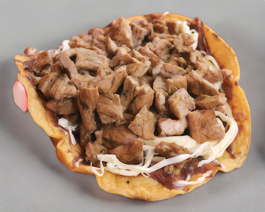 Pan Ciabatta, frijol, mayonesa, Arrachera, quesillo, col y cilantro