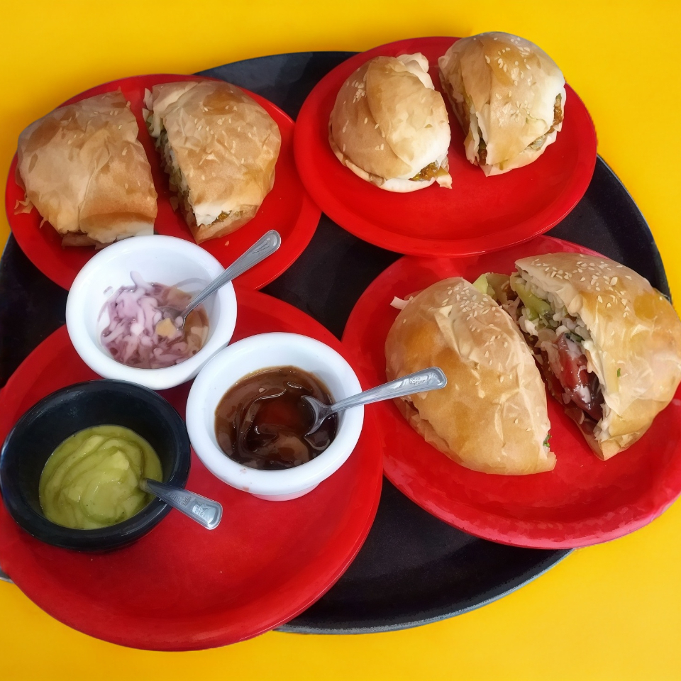Pan amarillo tradicional, mayonesa, fríjol, quesillo, aguacate, tomate y salsa o picante de tu elección.