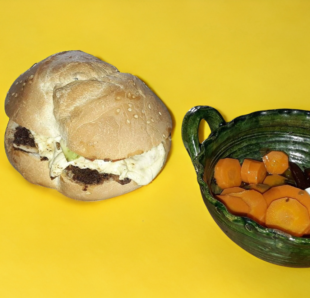 Pan amarillo tradicional, mayonesa, fríjol, tasajo, aguacate, tomate con salsa o chiles de la casa de tu elección.