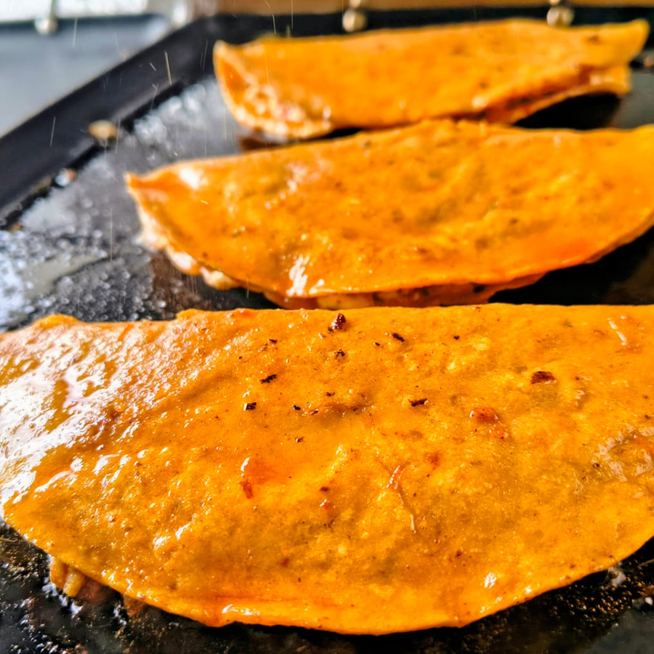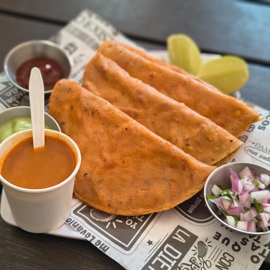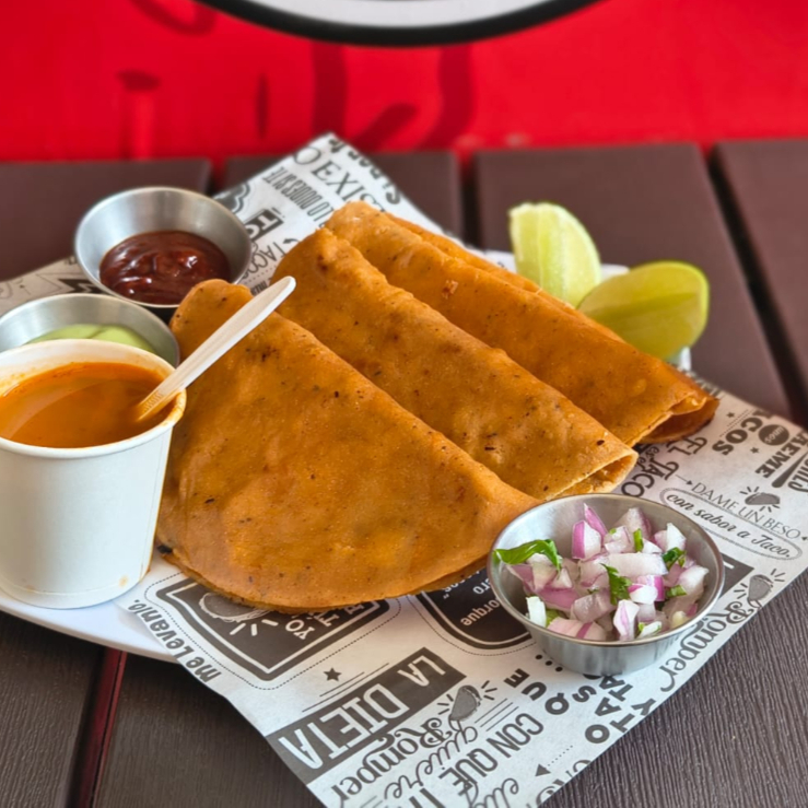 1 TORTILLA DE MAIZ TAMAÑO ESTANDAR FRITA CON QUESILLO Y CARNE DE BIRRIA DE RES