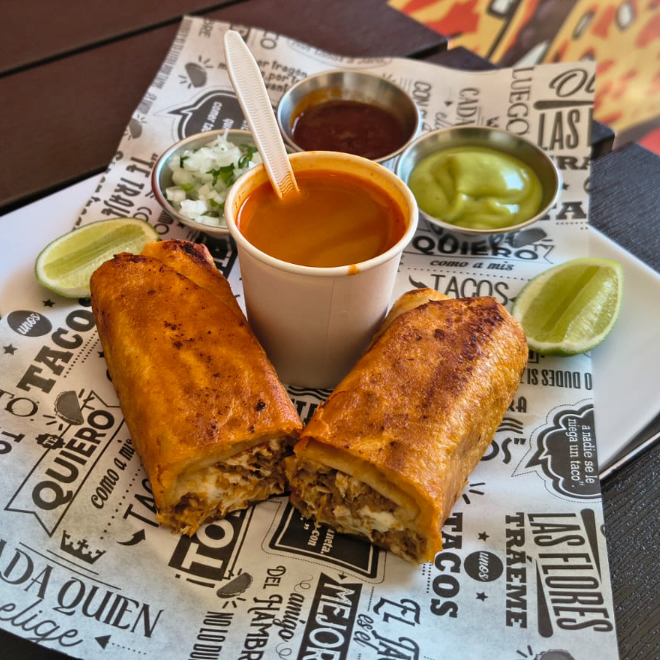 TACO DORADO*1 + REFRESCO*1 + CALDITO 4oz*1 + QUESABIRRIA DE MAIZ*1 + BURRITO*1