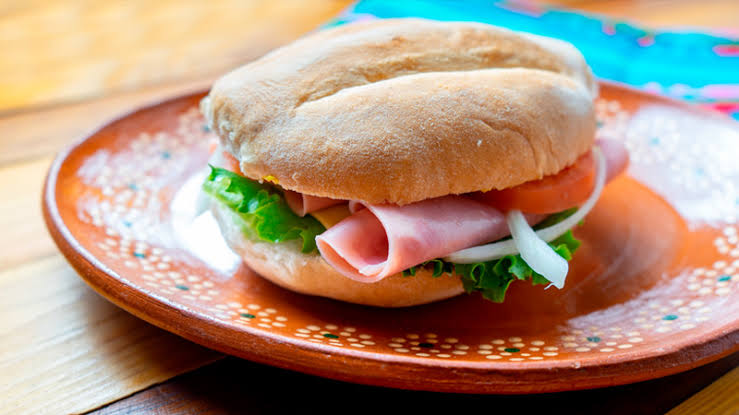Pan, mayonesa, carnitas surtidas verdura.
