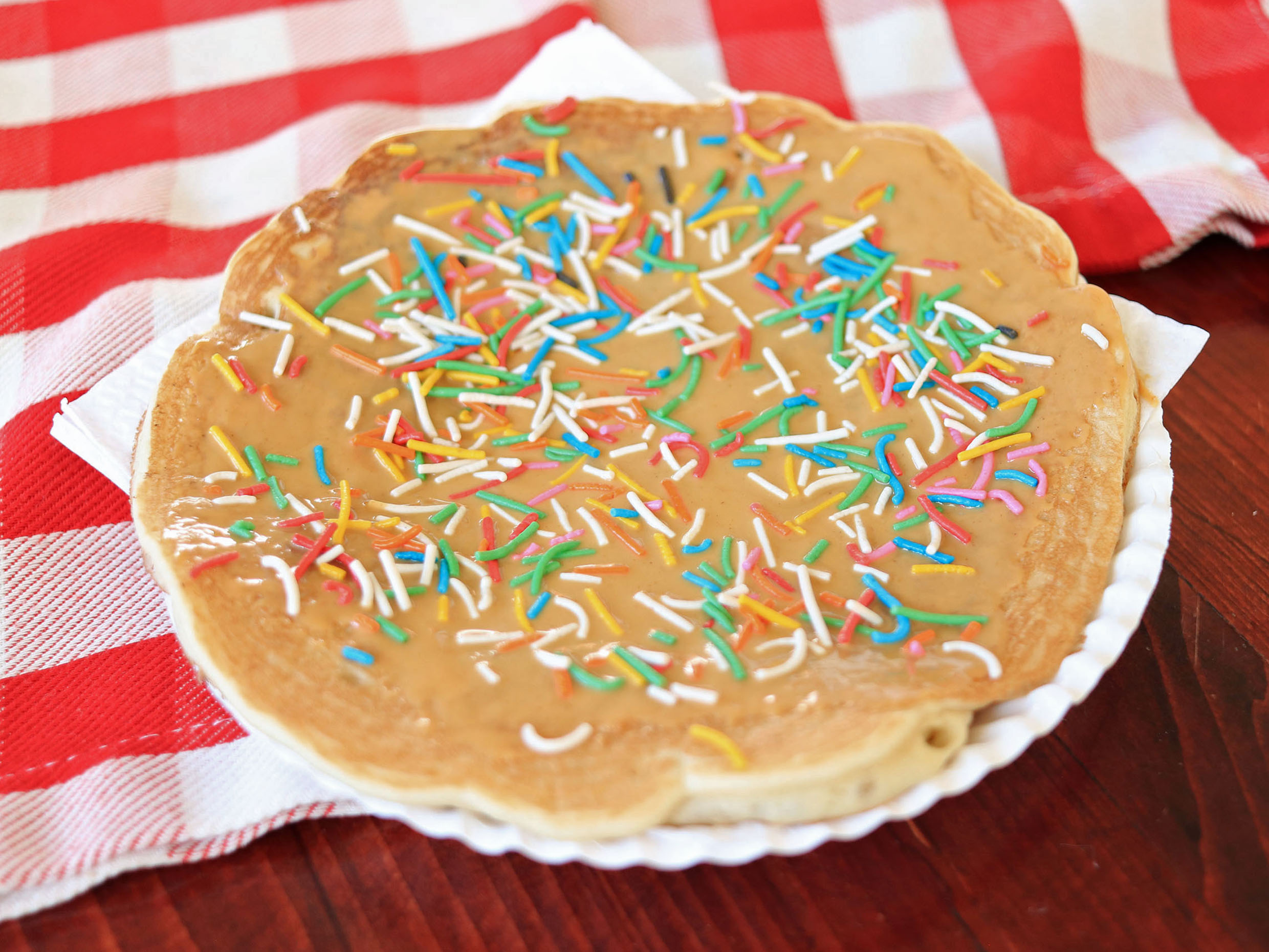Orden de 6 mini hot-cakes con crema de cacahuate.