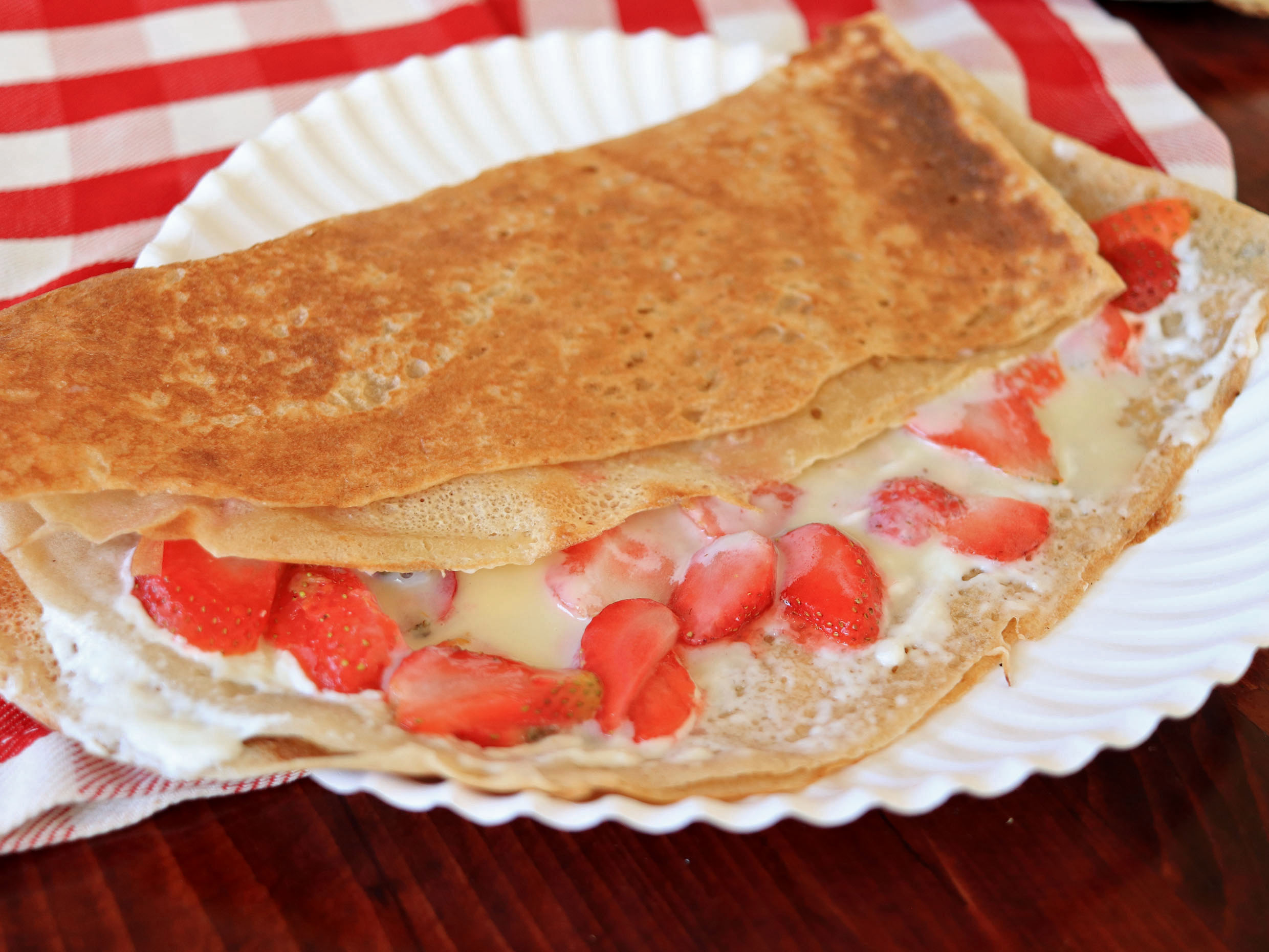 Crepa con o sin queso crema philadelpia y mermelada de fresa.