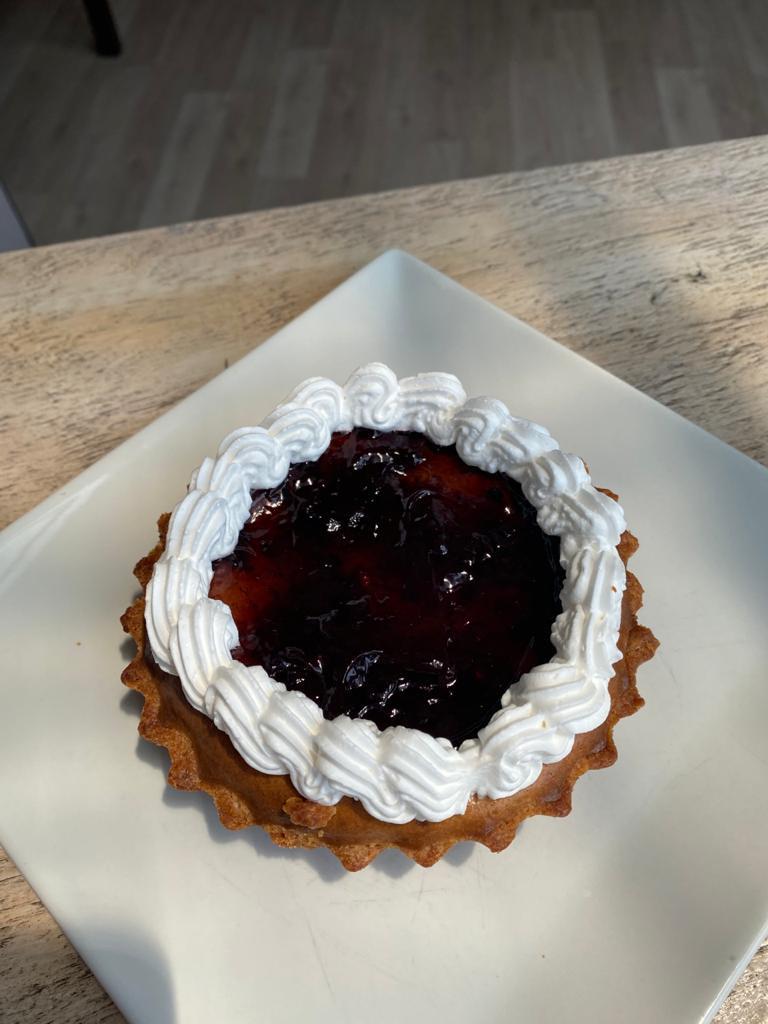 Leche, zarzamora, azúcar, crema batida, lechera.