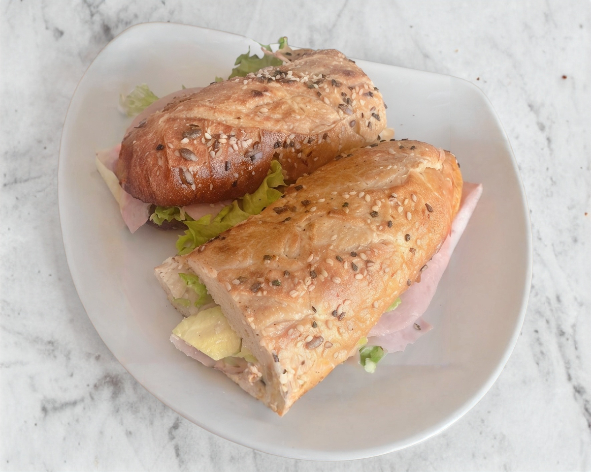 Bagui de jamón de pavo y manchego.