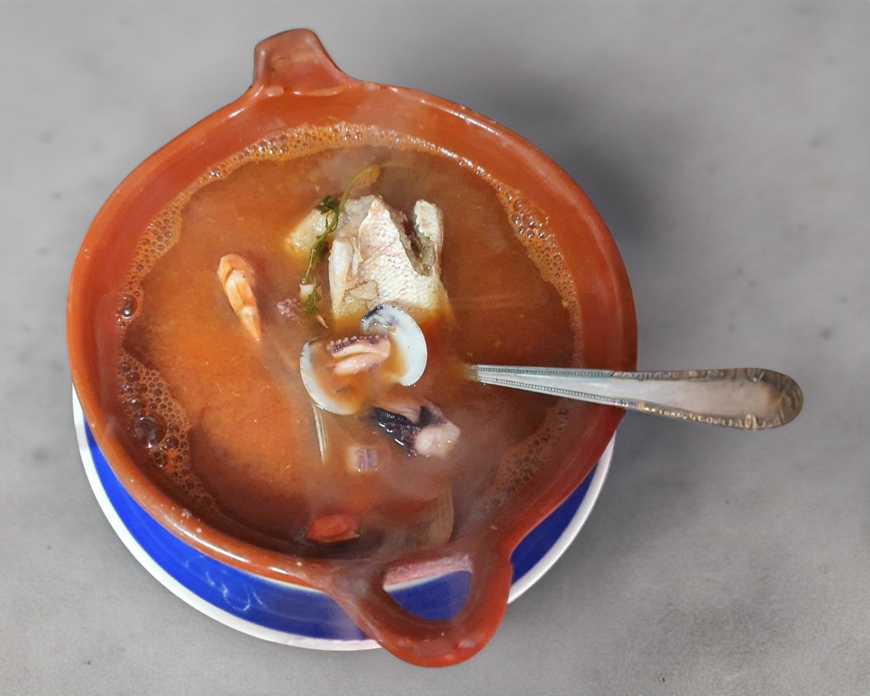 Delicioso caldo con combinación de camarones, jaiba, almeja, pulpo y Huachinango.