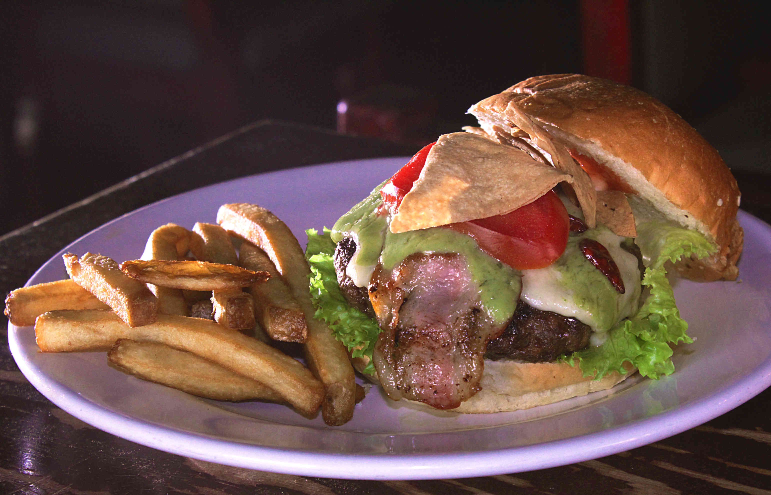 "Excelente selección de carne (220g) con un toque mexicano, con guacamole, totopos, chile de árbol mezclado con cebolla caramelizada. Con papas a la francesa. "