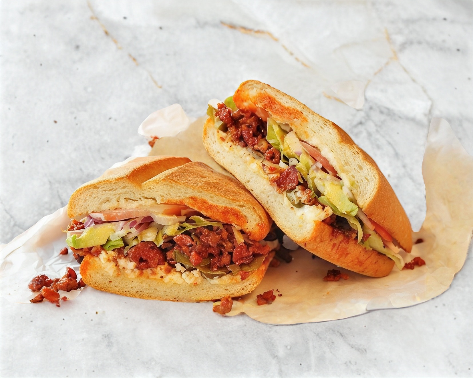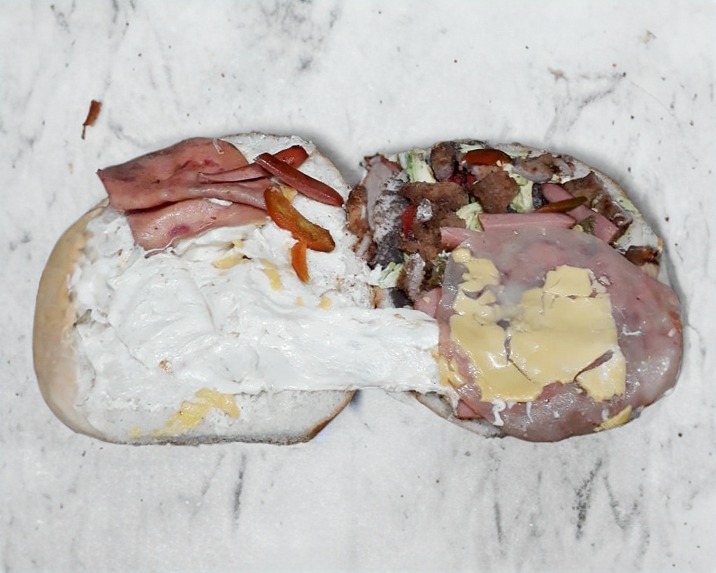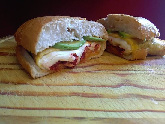 Jamón, salchicha y quesillo pan fresco, frijol, mayonesa, aguacate, tomate, y chiles