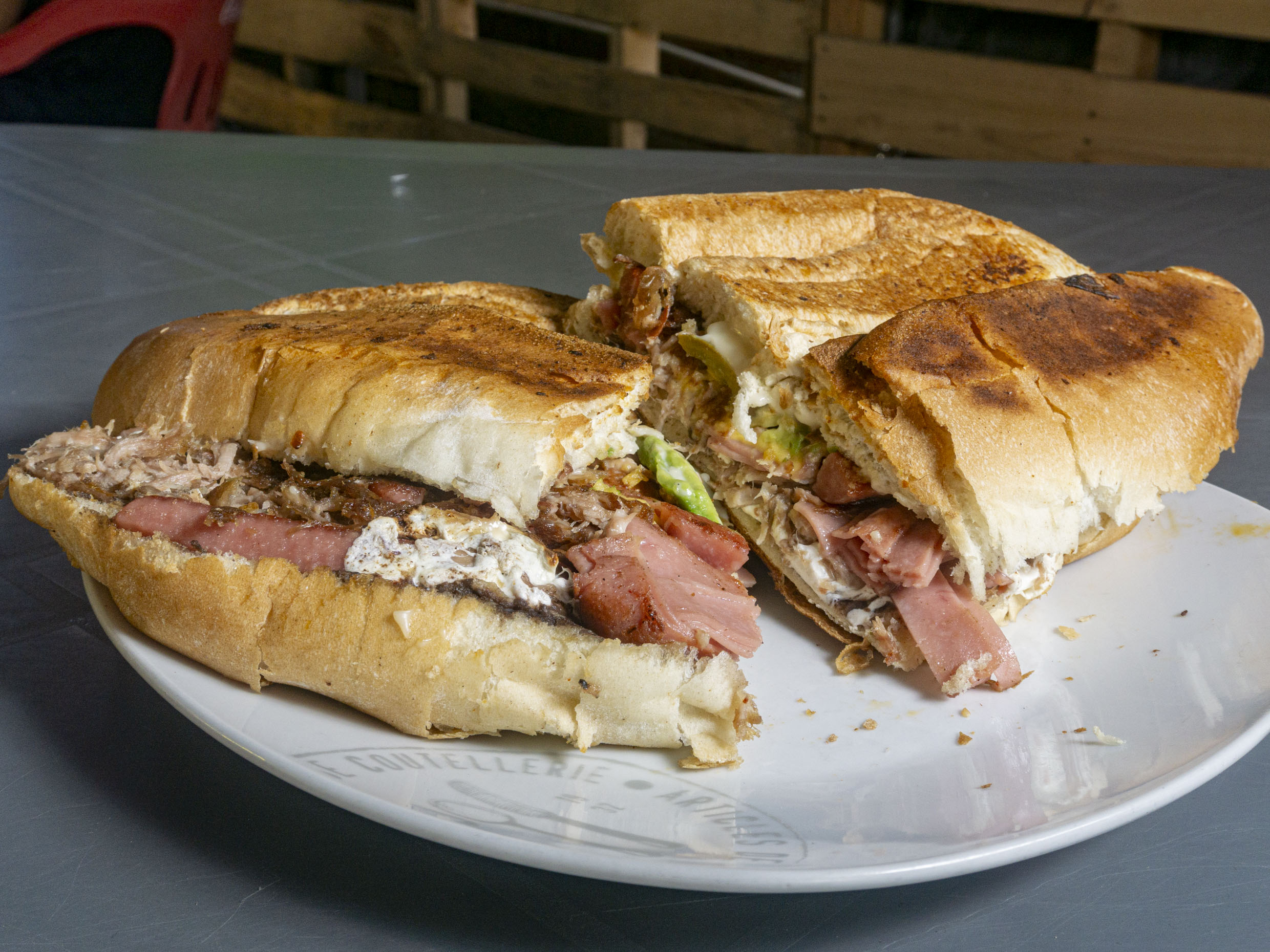 Jamón, quesillo, queso amarillo, tomate, aguacate, mayonesa, picante.