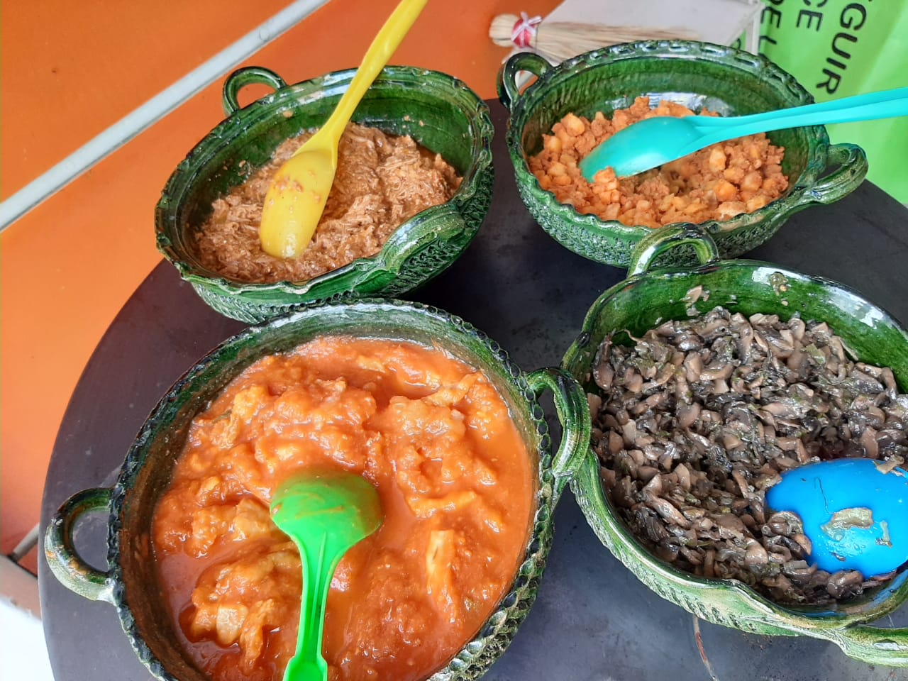 Queso manchego, pollo, jamón de pavo, queso amarillo, quesillo, frijol, mayonesa, aguacate, tomate, picante, fruta picada.