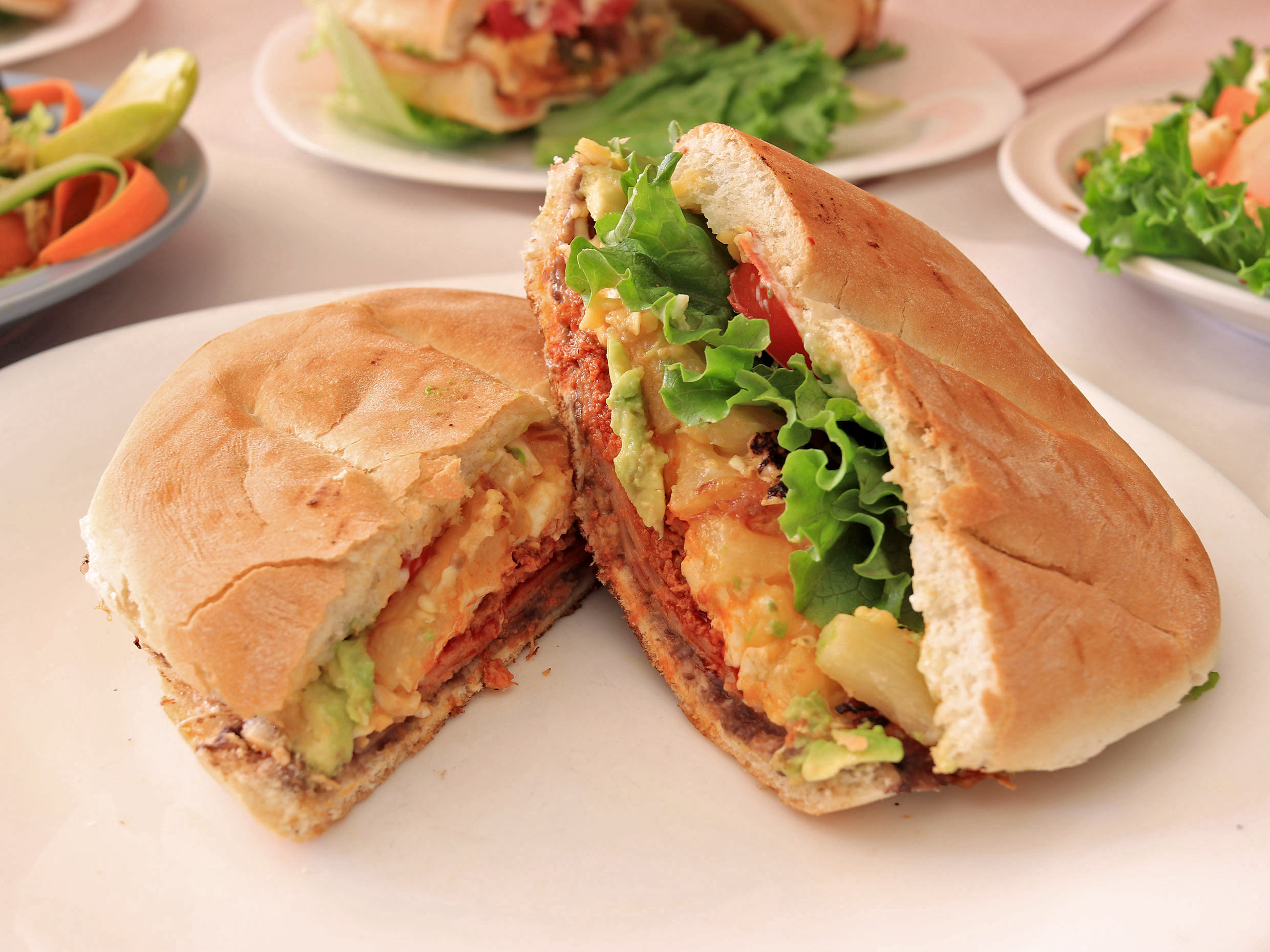 Carne de res, quesillo, jamón, queso amarillo, tomate, mayonesa, lechuga.