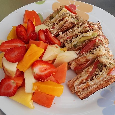 Club Sándwich con Fruta*1 + Enmoladas Con Pollo + agua el dia*1