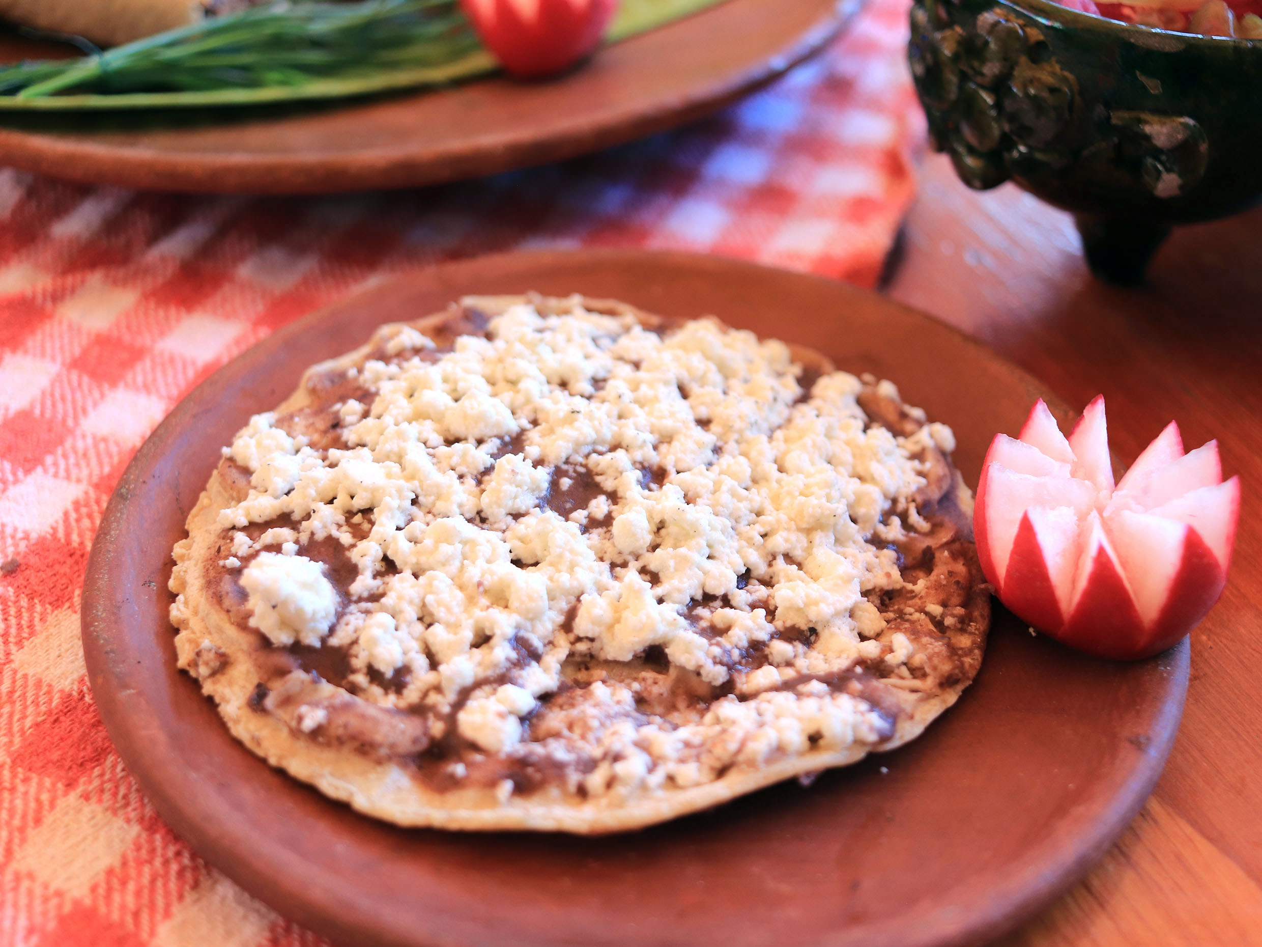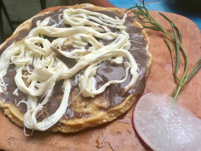 Deliciosa tlayuda tradicional elabora con asiento, pasta de frijol, quesillo y lechuga.