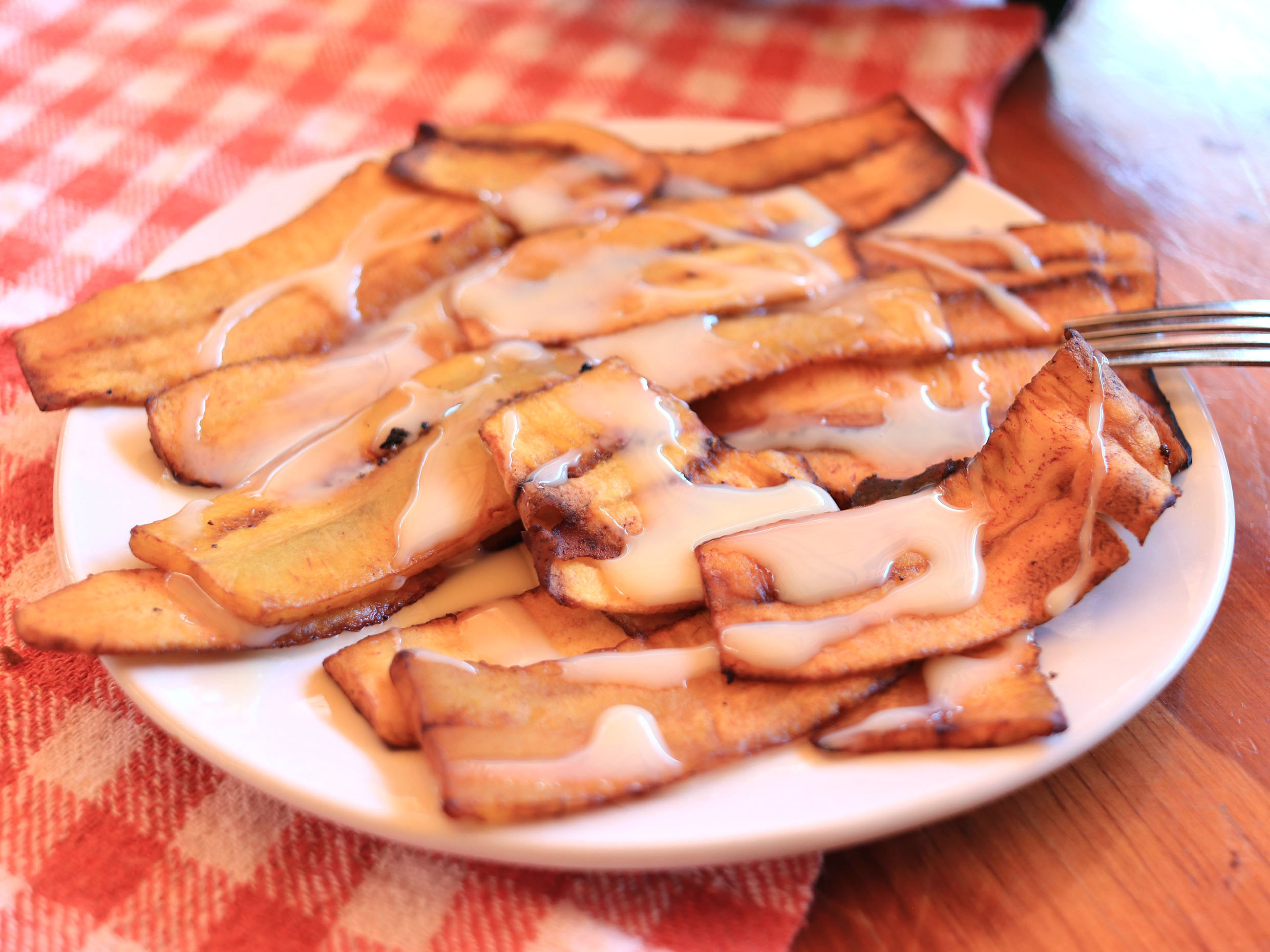 Plátanos fritos con lechera.