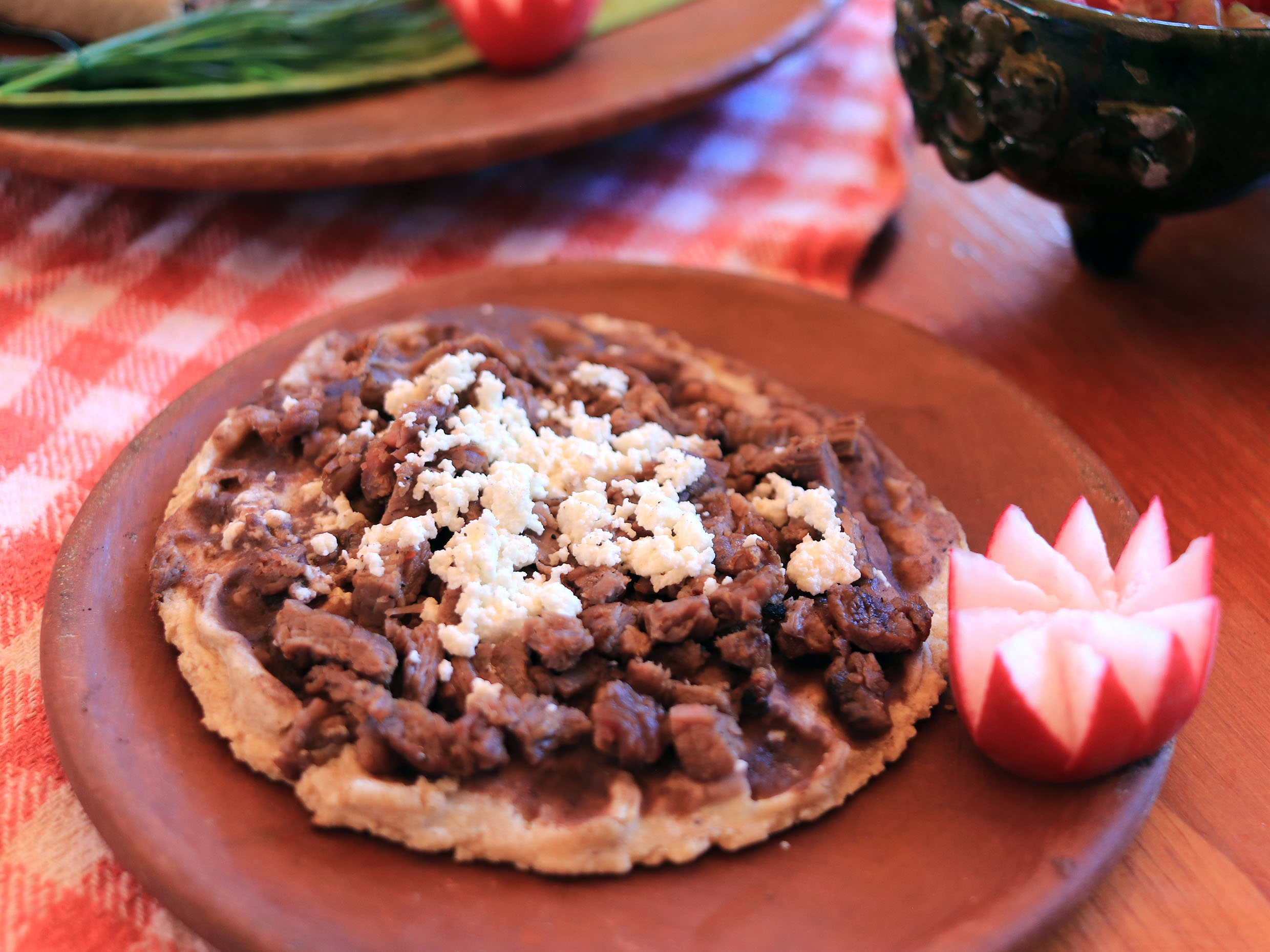 Deliciosas entomatadas acompañadas de tasajo, chorizo, huevo o cecina enchilada.