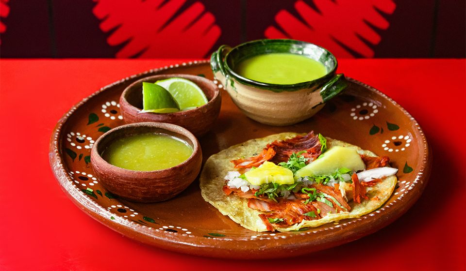 1 Tortilla de maiz artesanal num 12 con carne pastor Mixtacos, piña, limón,salsa verde y guacamole aparte