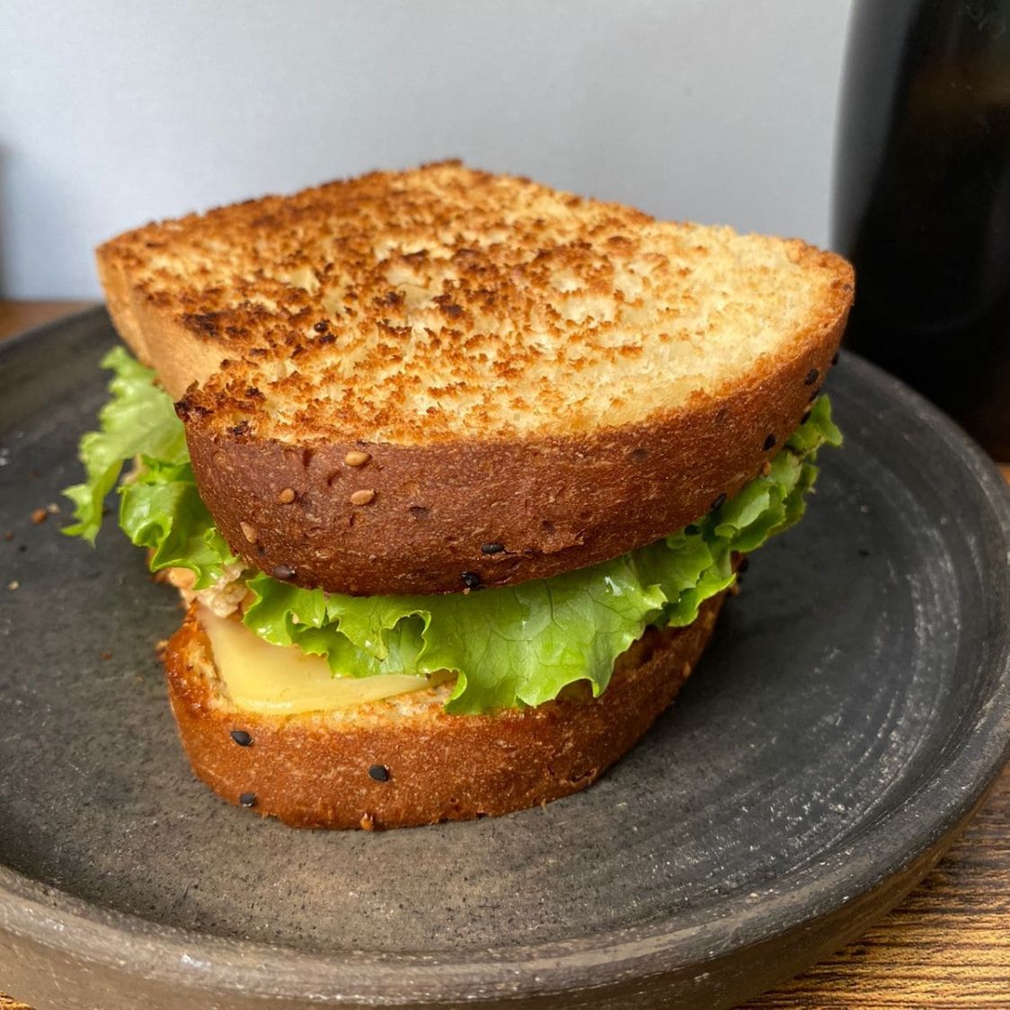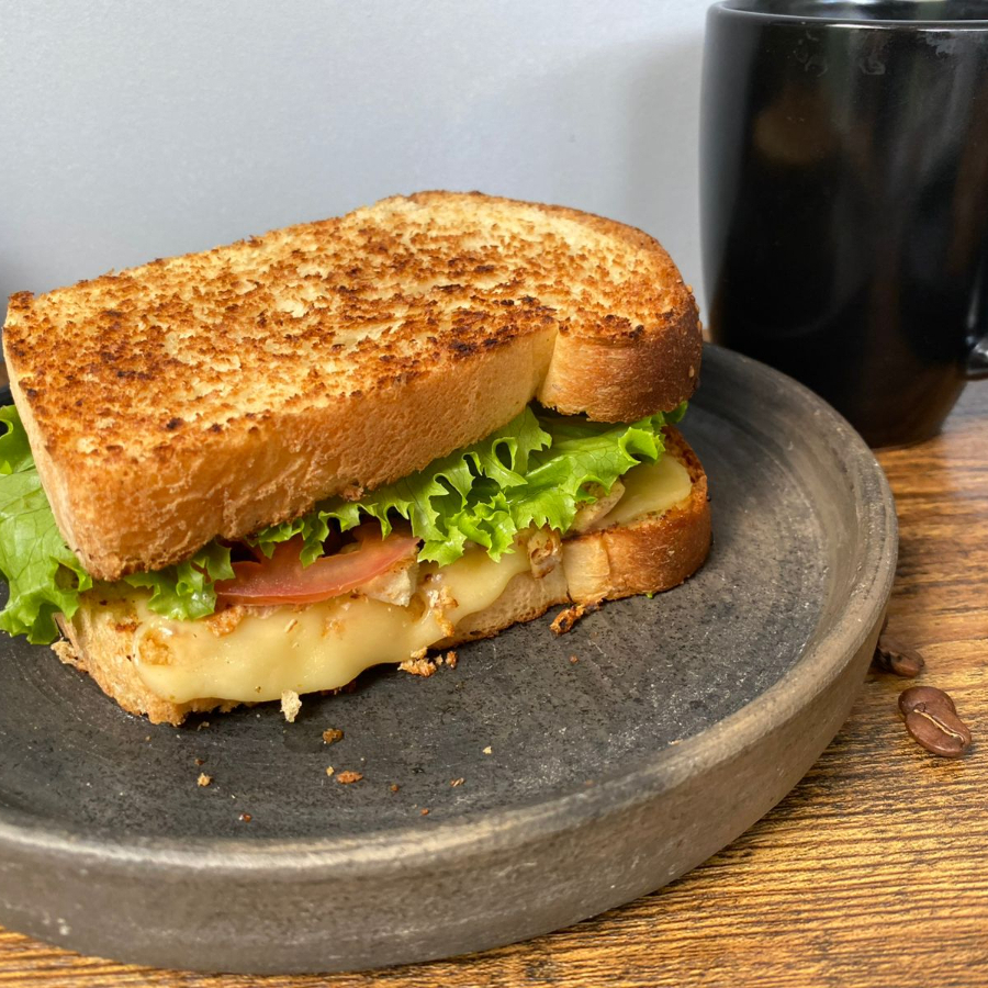 Elaborado con pan artesanal, pechuga de pollo a la plancha, queso manchego , lechuga, tomate, y mayonesa.
