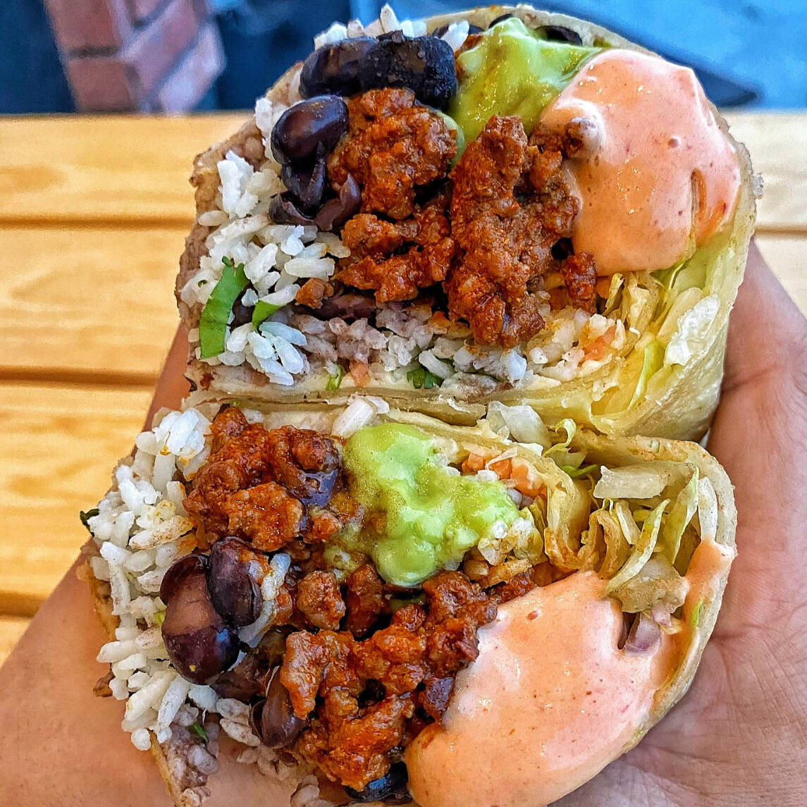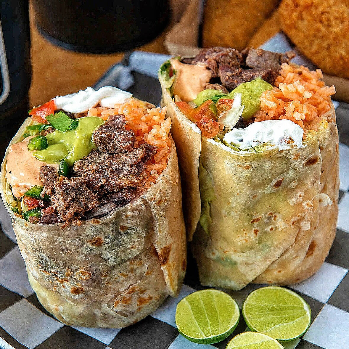 2TORTILLA DE HARINA XXL,CARNE BLANDA,LECHUGA, ARROZ,QUESO, FRIJOLES REFRITOS PICO DE GALLO, ELIGE ALGÚN EXTRA... INCLUYE PORCION DE PAPAS A LA FRANCESA.