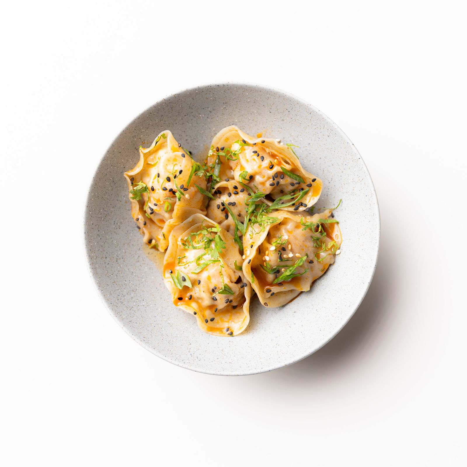 5 pzas. Rellenas de cerdo, verduras y shiitake hervidas con aliño de chili oil..