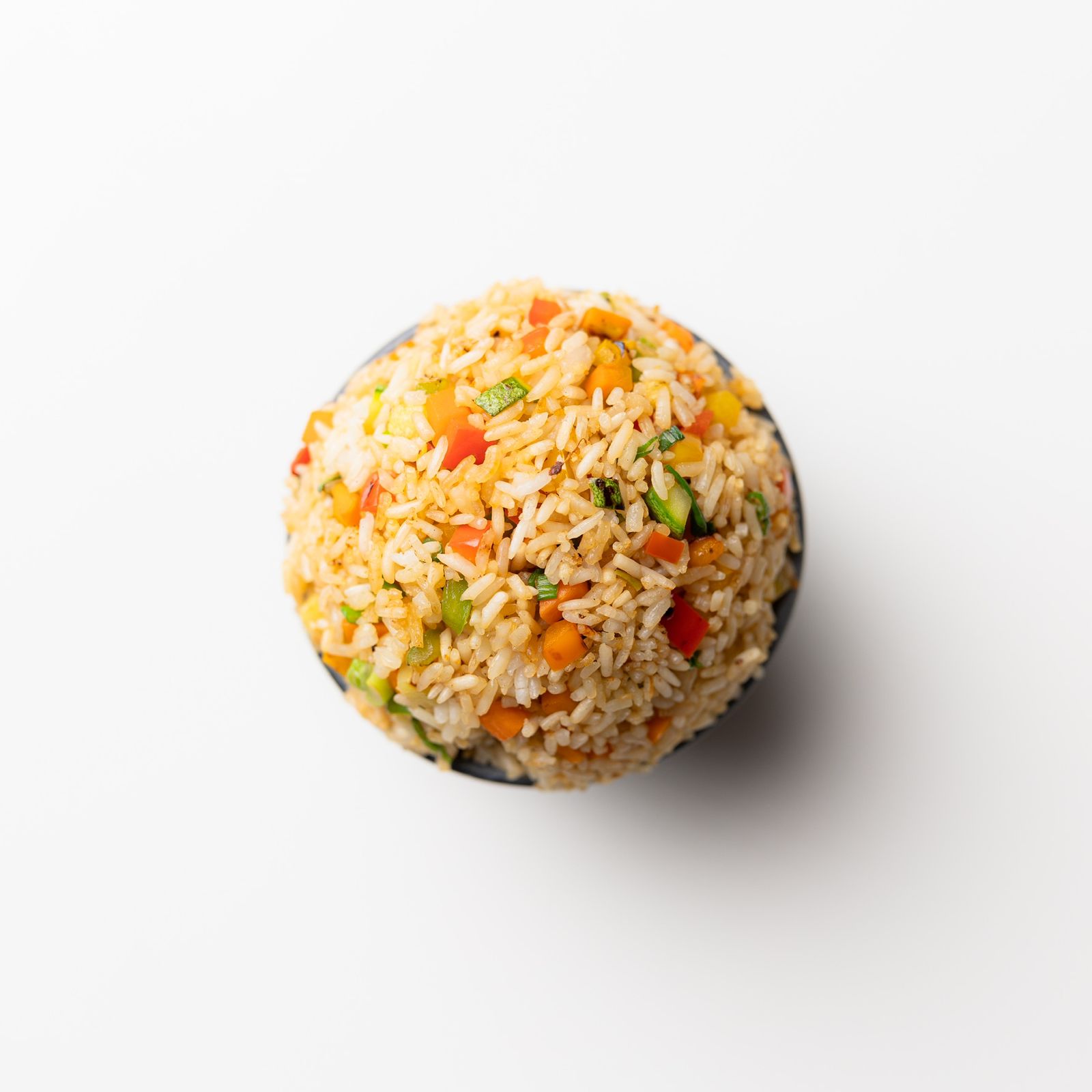 Arroz frito con mezcla de verduras y salsa de soya.