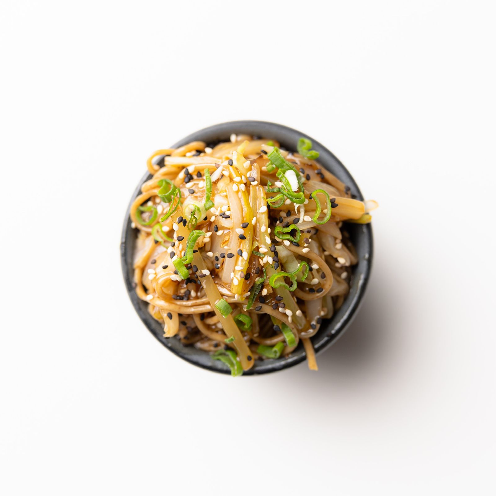 Fideos de trigo, mezcla de apio, cebolla, ajo y salsa de ostión.