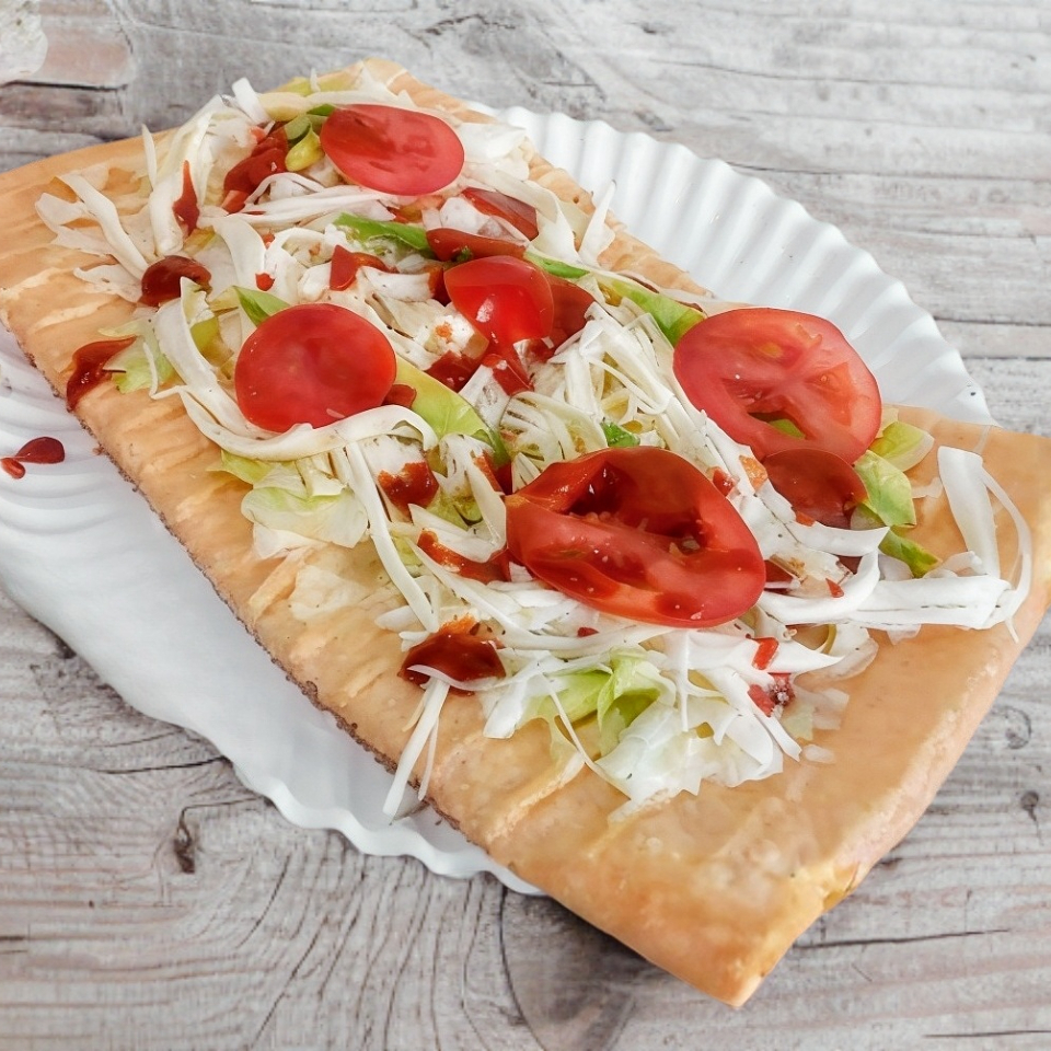 Elaborada con salchicha roja, tomate, aguacate, lechuga, frijol, mayonesa, y chiles en vinagre