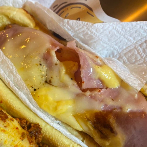 Paquete de 3 hot dogs: trump. (salchicha envuelta en tocino, con jamón de pavo queso amarillo y queso manchego)