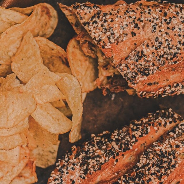 Elaborado con nuestro baguette artesanal, pesto, chistorra y queso manchego gratinado. Acompañado de papas o ensalada
