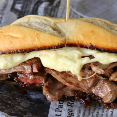 Sándwich con queso Filadelfia, incluye ensalada o papas.